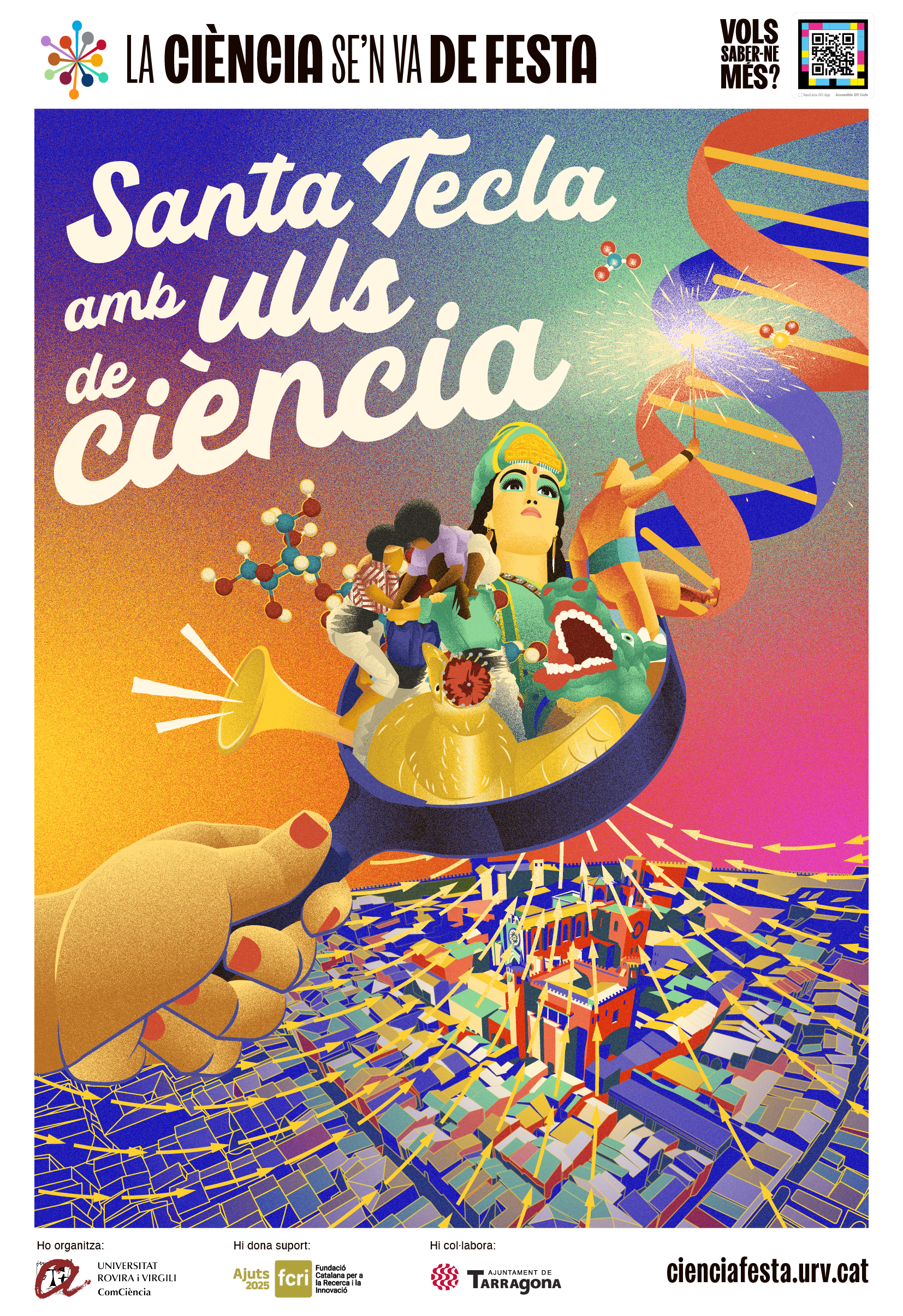 El projecte La ciència se’n va de festa fa divulgació científica a partir d’un esdeveniment multitudinari, arrelat al territori i que interpel·la tothom: la festa major. Posem la ciència, per primer cop, al centre de la festa i la desestacionalitzem. El projecte, replicable, se centra en 12 disciplines científiques relacionades amb la festa major (la química de la pirotècnia, la història de la festa, filologia per parlar sobre la terminologia, l’arquitectura dels castells, la física dels gegants…). Farem cartells molt visuals, que es distribuiran per mupis de Tarragona (ciutat inicial del projecte) durant tot l’any, inclouran una frase que cridi l’atenció amb una breu explicació divulgativa.